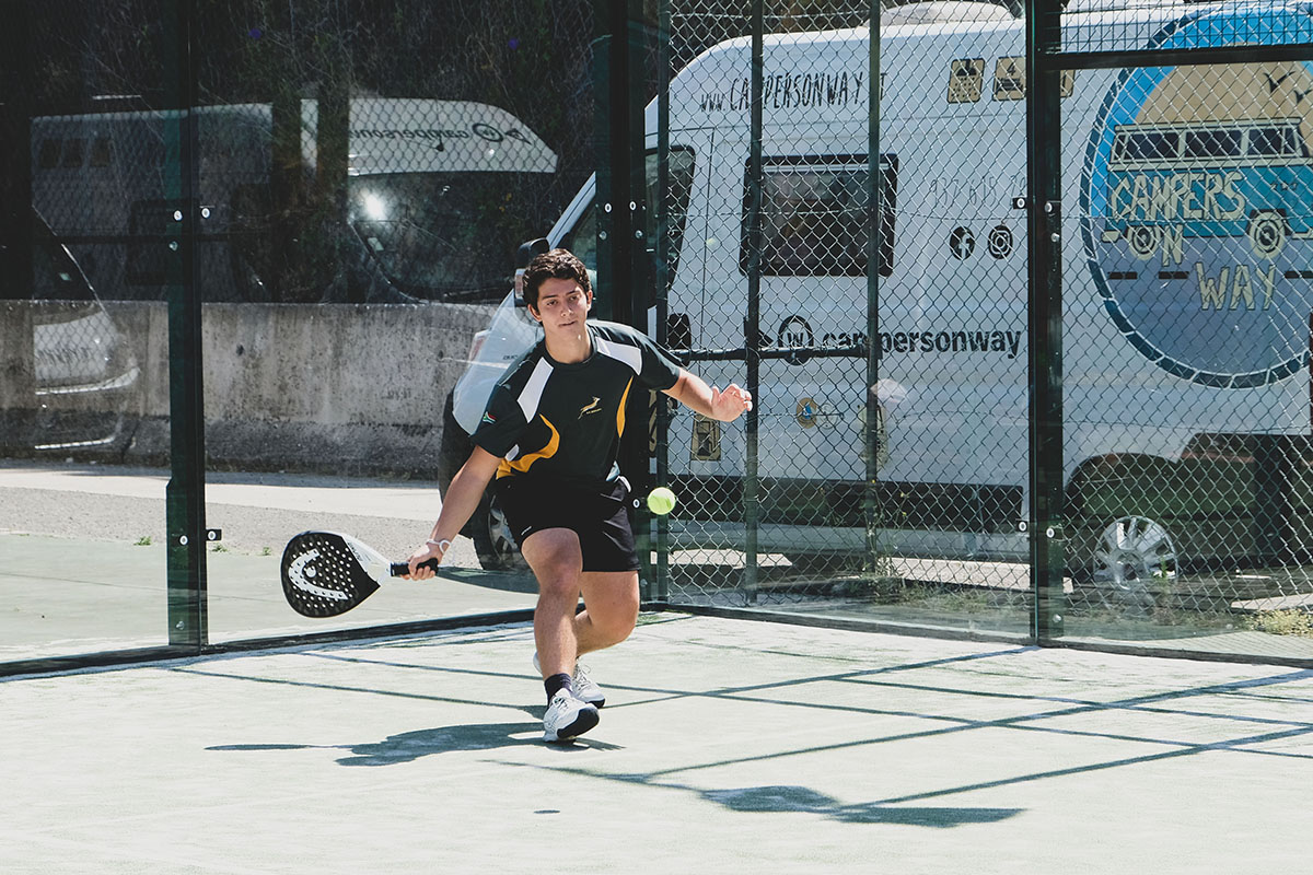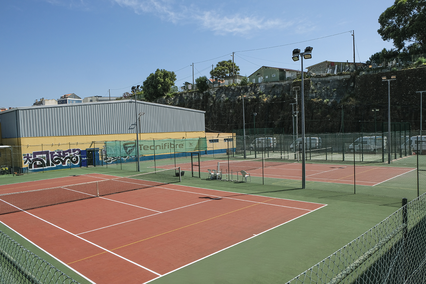 2 campos de ténis, 1 campo de padel e parede de treino.